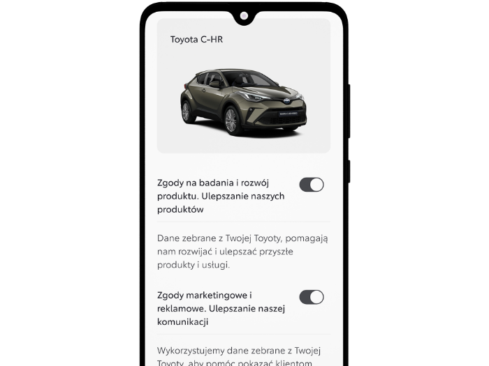 *Usługi eCare to usługa dla użytkowników wybranych modeli samochodów marki Toyota z aktywnymi usługami Connected, z aktywną funkcją Kontrolki oraz z aktywną zgodą marketingową. Bez spełnienia obu warunków proaktywny kontakt pracownika serwisu Toyoty z Klientem, nie jest możliwy. Korzystanie z usługi eCARE jest bezpłatne przez 10 lat, licząc od dnia pierwszej rejestracji samochodu, bez limitu km.