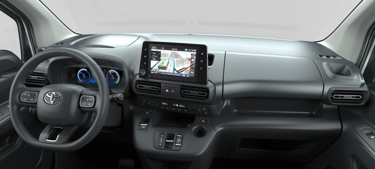Wersja Comfort wnosi ponadto wyposażenie typowe dla modeli osobowych, w tym system multimedialny Toyota PRO-Touch z kolorowym ekranem dotykowym 8" z obsługą Apple CarPlay* oraz Android Auto™, wyświetlacz LCD 10" na tablicy wskaźników, systemy bezpieczeństwa czynnego Toyota Safety Sense, przednie i tylne czujniki parkowania wraz z kamerą cofania 180°, system bezkluczykowego dostępu do samochodu (Inteligentny kluczyk) i automatyczną klimatyzację dwustrefową.
